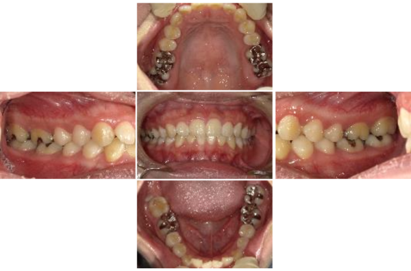 左顎関節症(開閉口時疼痛)、不随症として頭痛、左側咬合不全症